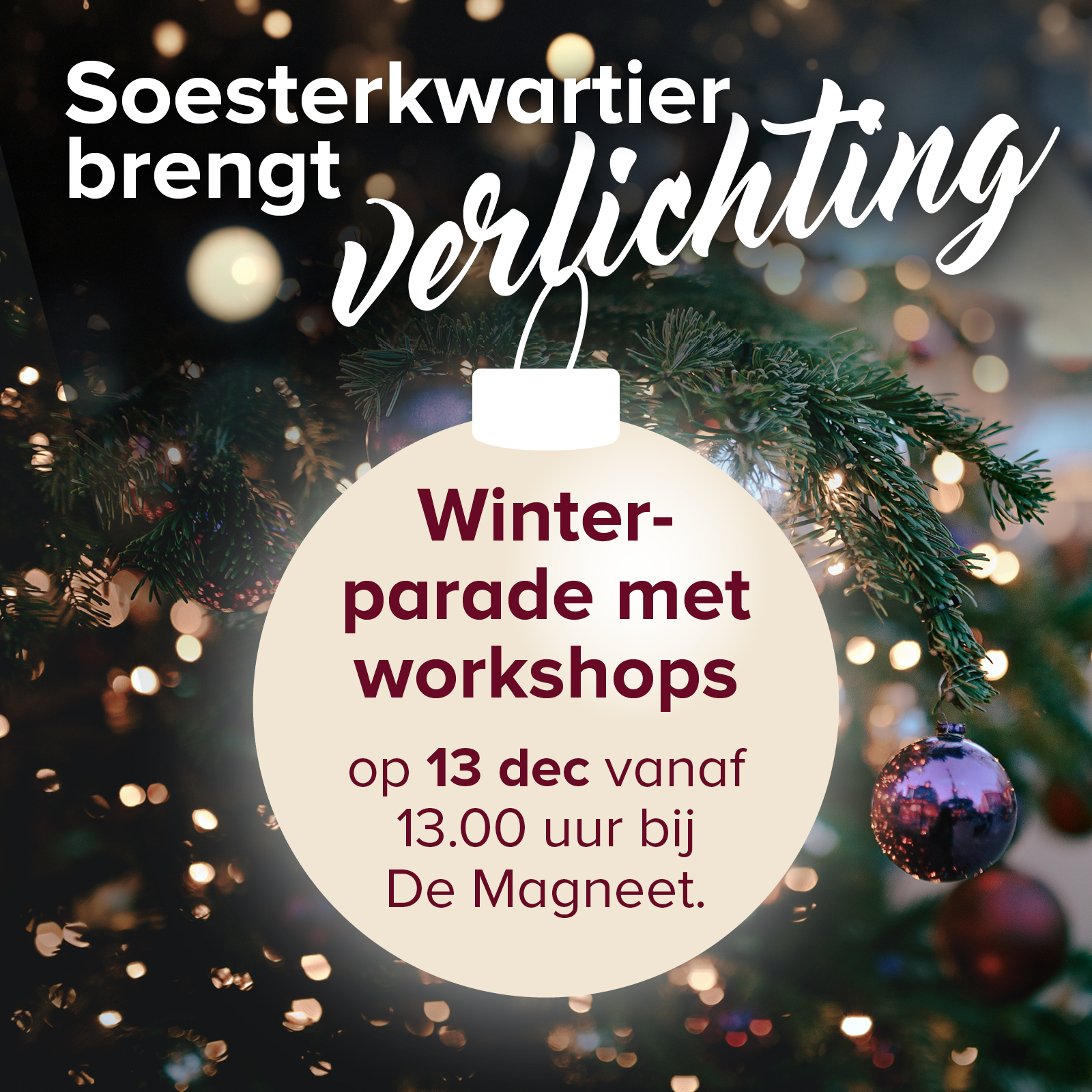 De Magneet Maasstraat 2, AmersfoortHeb jij zin om creatief bezig te zijn, te genieten van muziek onder het genot van warme choco en oliebollen en andere wijkbewoners te ontmoeten? Kom dan 13 december van 13.00 - 16.30 uur naar De Magneet (Maasstraat 2) en vanaf daar lopen we gezamenlijk naar het plein voor de Emmauskerk waar om 17.00 de